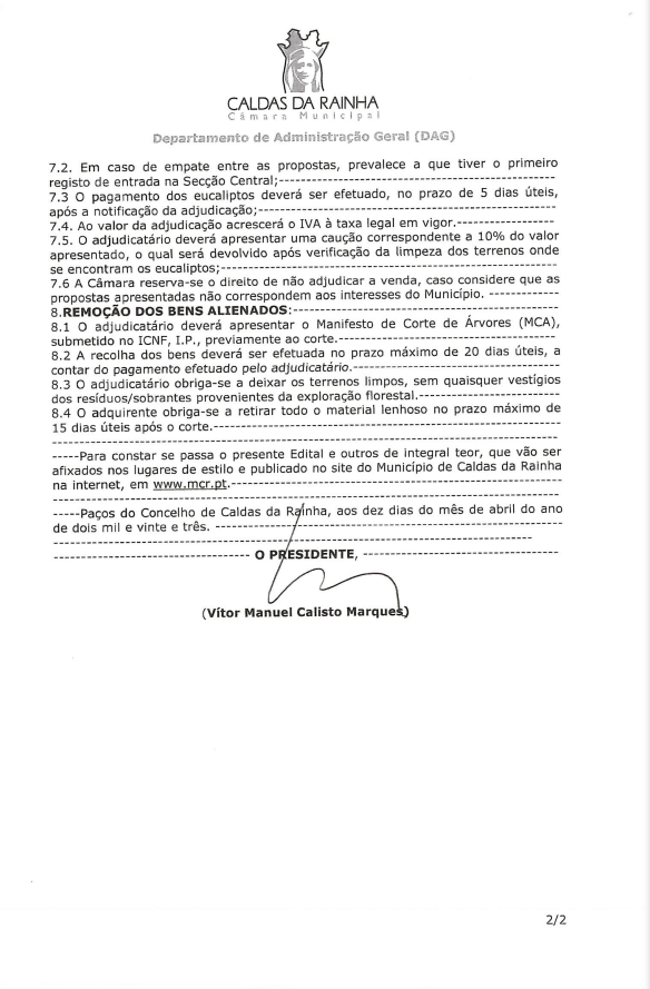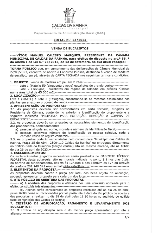 Edital n.º 24/2023 - Venda de Eucaliptos